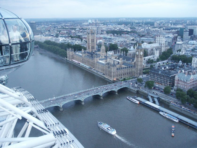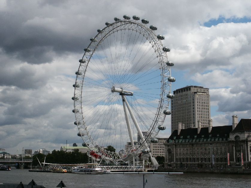The London Eye is the largest ferris wheel in the world. It is so huge you ride in it enclosed in a little car.