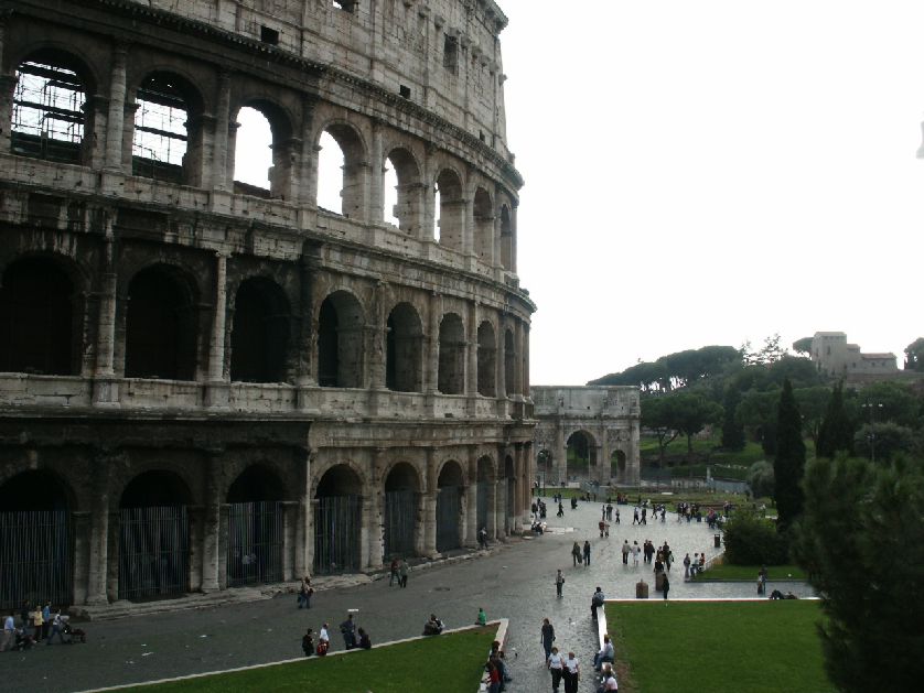 The Roman Colloseum with the Arch of Constantine in the background.