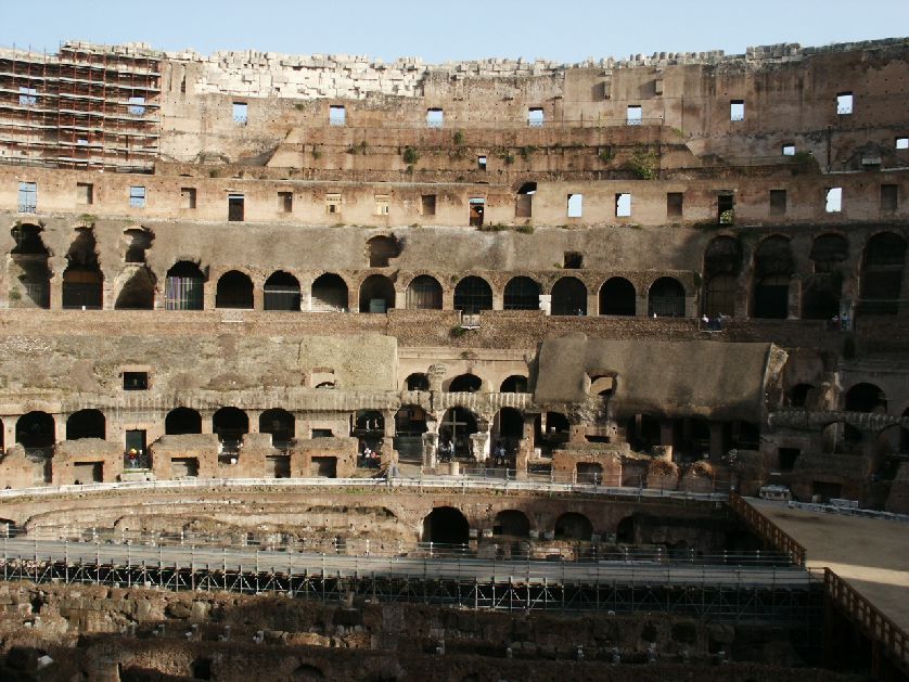 The interior of the Colloseum. Unfortunately, during the medieval age, many of the blocks of the Colloseum were stolen to make other monuments and churches.