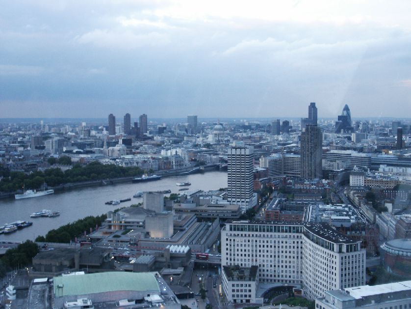 View of London down the river from Parliament. You can see the dome of St. Pauls Cathedral just about center of the picture.