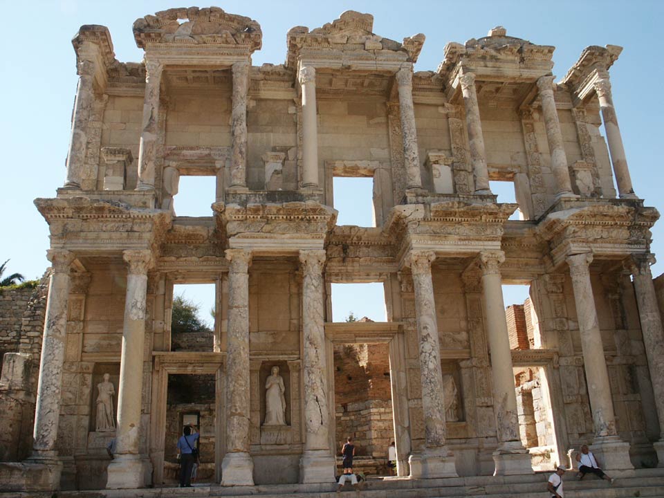 The front of the Library of Ephesus.